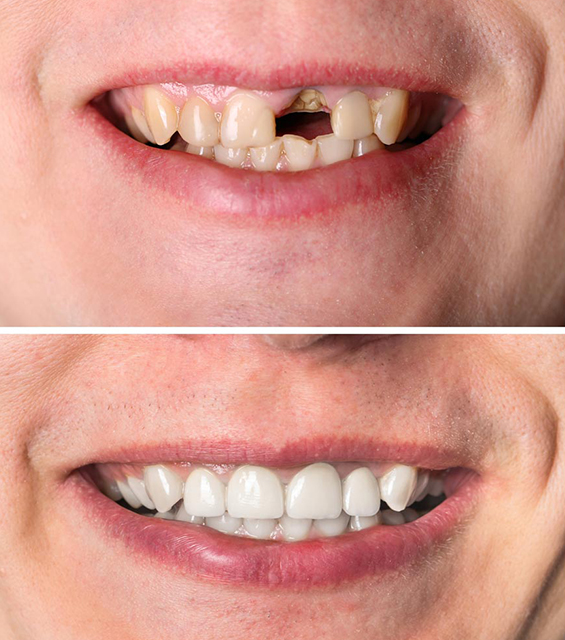 Dental implant surgery is a procedure that replaces tooth roots with metal, screwlike posts and replaces damaged or missing teeth with artificial teeth that look and function much like real ones. Dental implant surgery can offer a welcome alternative to dentures or bridgework that doesn't fit well and can offer an option when a lack of natural teeth roots don't allow building denture or bridgework tooth replacements.